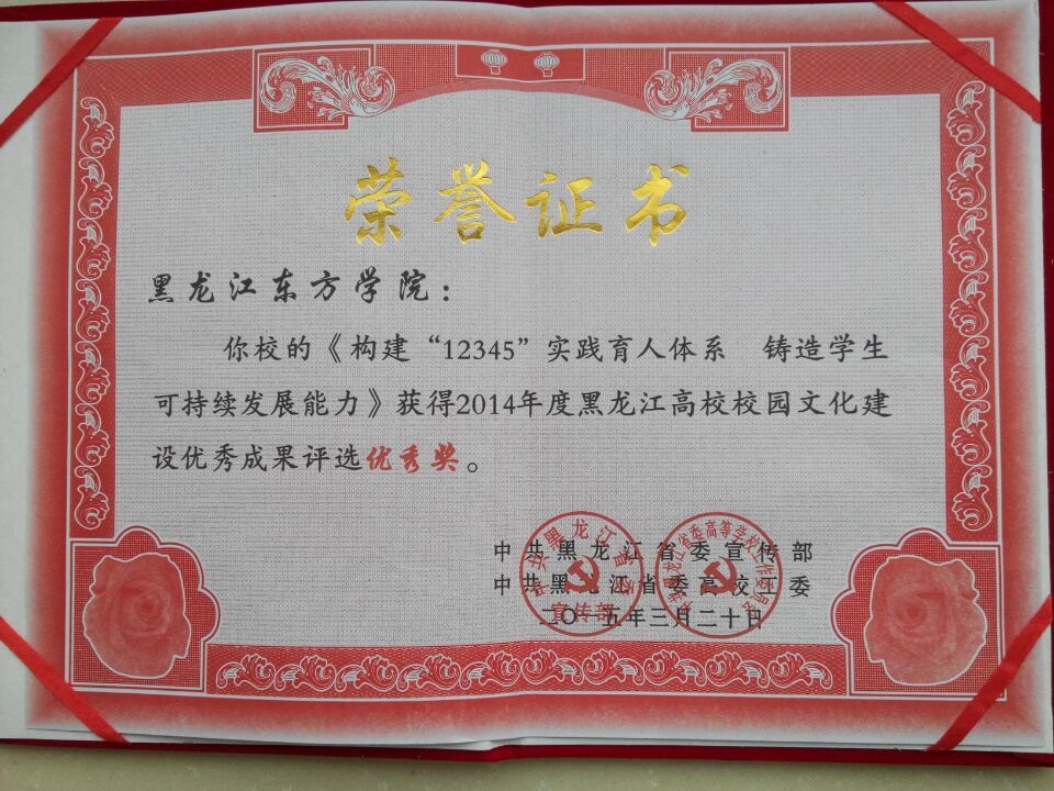 由院团委申报的《构建“12345”实践育人体系,铸造学生可持续发展能力》荣获2014年全省高校校园文化建设优秀成果奖。我院大学生社会实践活动已经连续两年获得全省高校校园文化建设优秀成果奖。
