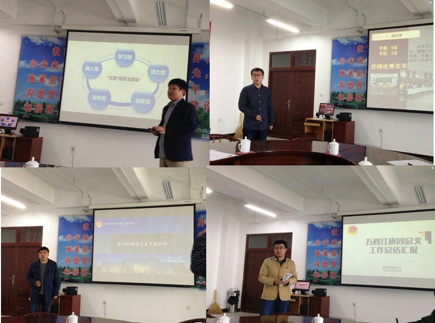 根据评委投票,食品与环境工程学部团总支、外国语学部团总支被评为2014—2015年度“五四红旗团总支”;建筑工程学部团总支、管理学部团总支被评为“共青团工作创新奖”;新闻学专业2013级团支部等5个团支部被评委为 “五四红旗团支部标兵”。
