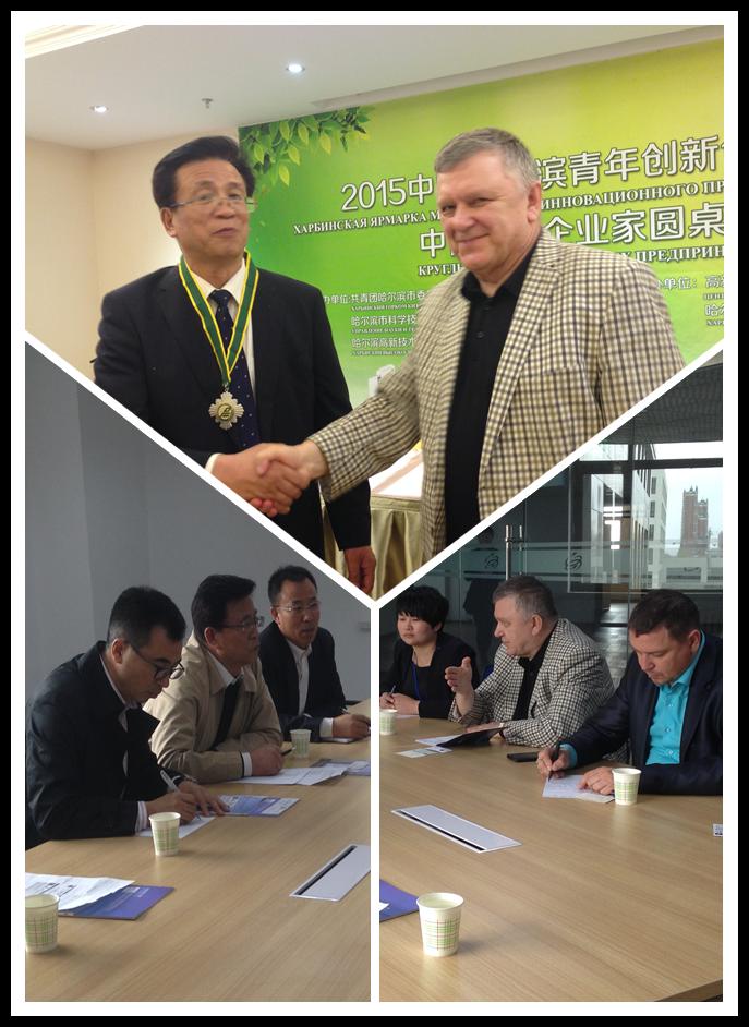 2015年5月4日下午,学院副院长刘德深,食品学部主任蔡柏岩,外国语学部学务主任助理郑志慧,俄语教师刘文旭一行四人来到哈尔滨高新技术产业区火炬欧亚大厦和俄罗斯莫斯科国立食品大学外事副校长维克多.菲尔斯特先生、助理切尔曼先生进行了亲切友好的座谈。