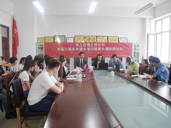 2015年5月27日,热烈响应俄中领导人普京和习近平共同支持的《海上丝绸之路》计划与《商品与服务跨境市场问题研究》国际研讨会视频会俄罗斯弗拉基婕斯托克、中国山东威海、哈尔滨联合举办。刘德深副院长同外国语学部俄语专业教师,2012级俄语专业学生共同收看了该会议。俄语专业师生承担了此次视频会议的所有翻译工作。