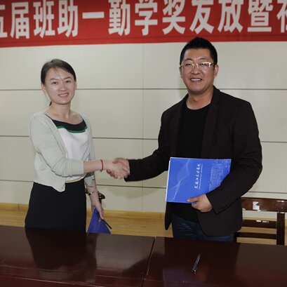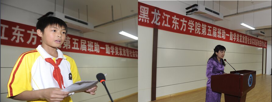 在表彰大会上,我院爱心班级代表向受资助的贫困小学生颁发了勤学奖学金。学院的领导为爱心班级代表颁发了班助一“先进集体”荣誉证书。
