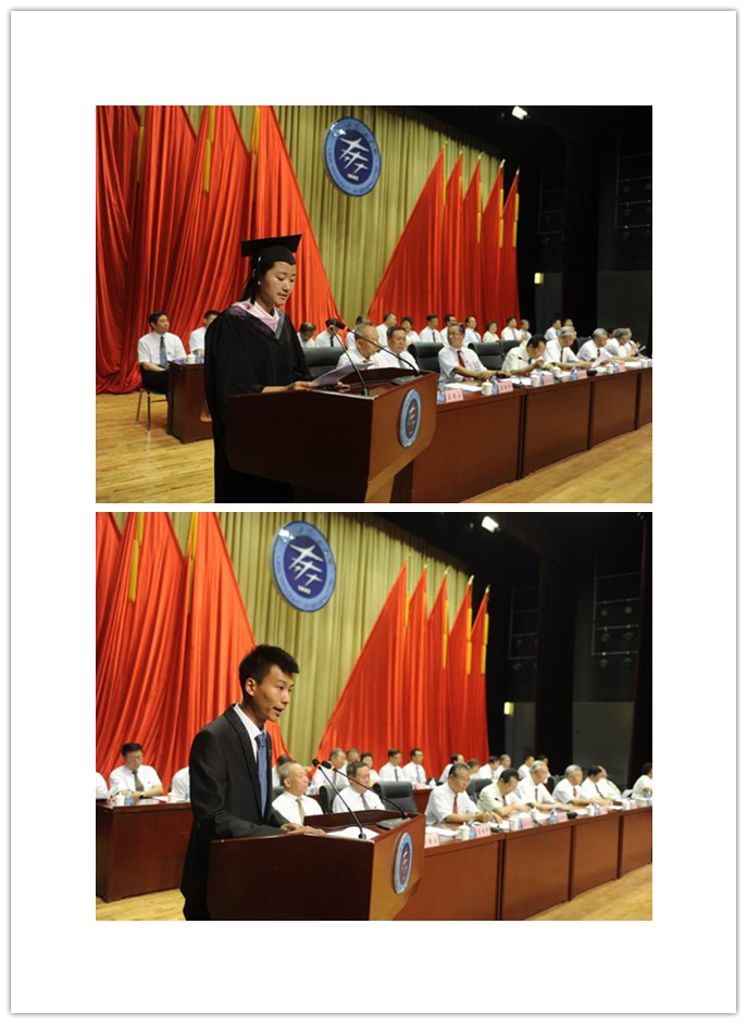 毕业典礼上,经济贸易学部2011级学生王古月代表毕业生发言,言语中充满对母校的感激和不舍,并感谢母校老师们为她们的成长做出的努力。