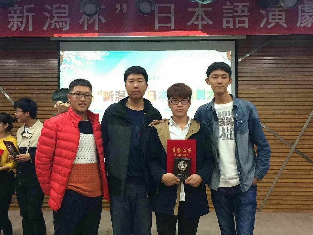 2015年10月11日,我校日语专业周环宇、华子辉、石宝龙三名同学参加了在哈尔滨师范大学举行的“新潟杯”日文小品大赛并获三等奖,郑海峰老师获得“优秀指导教师奖”。