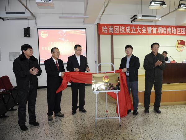 伴随着嘹亮团歌,开班仪式在学员们的期待中拉开帷幕。黑龙江东方学院团委书记、哈南团校副校长高文举宣读了哈南团校成立的决议。学院党委副书记、副院长左长滨、刘德深,中共平房区委副书记李兵,团市委书记李晗龙,哈尔滨市团校校长胡齐齐共同为哈南团校揭牌。与会领导共同为哈南团校首批特聘教授颁发了聘书。成立大会上,平房区委副书记李兵、团市委书记李晗龙、学院党委副书记、副院长左长滨分别进行了讲话。