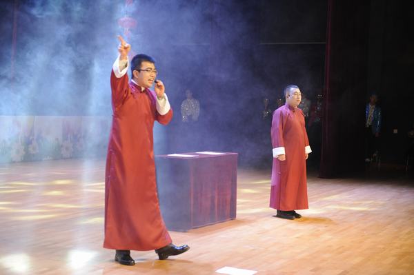 体育教研室全体教师带来的开场舞《中国范》用欢快的舞步为观众送上了最诚挚的祝福;东方之声艺术团表演的《赞东方》,用快板书的表现形式表达了对母校的热爱之情。图书馆的新戏曲联唱、机关表演的现代京剧《沙家浜》选段、公共外语教研部表演的配乐诗朗诵《WHEN YOU ARE OLD》、艺术设计教研部选送的舞蹈《GOOD BOY》、计算机学部表演的歌伴舞《护花使者》,英语话剧《皇后特烦恼》、舞蹈《万万没想到》、女声独唱《等待》等节目的表演中,大家载歌载舞,以此抒发欢度新年,以及对东方、对祖国、对民族的热爱之情。联欢会现场,时时响起阵阵掌声.伴随着笑声连连,联欢会在欢快的舞蹈歌舞乐《开门大吉》中落下帷幕,出席联欢会的学院领导上台与演员合影留念。