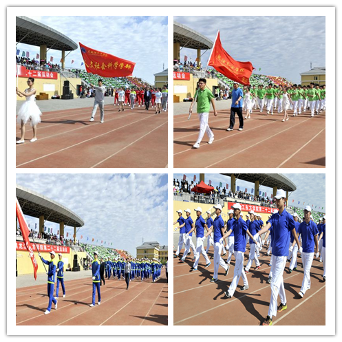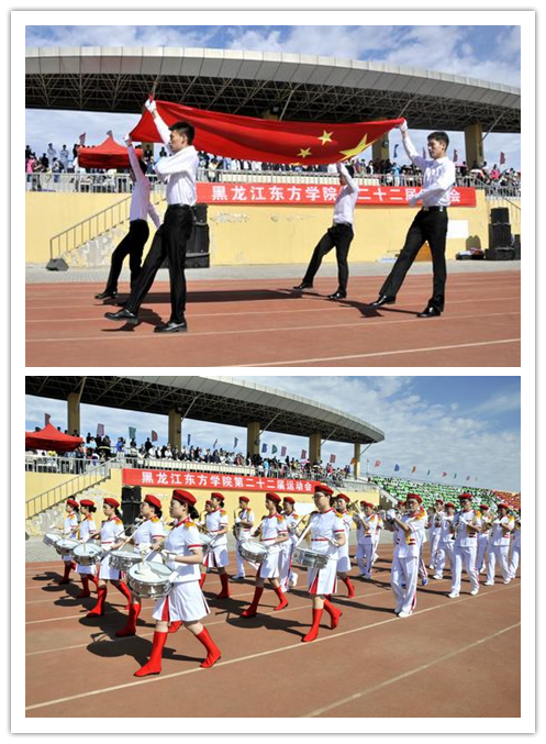 伴随着激昂的运动员进行曲,国旗、军乐队、校旗、花束、彩旗队伍,以及裁判员队伍、机关单位代表队、直属单位代表队、各学部代表队伍共计17个方队,迈着整齐划一的步伐依次入场。