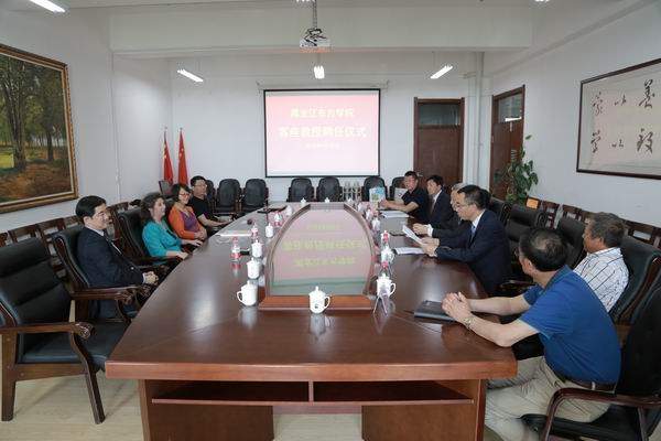 孙院长对高醇芳女士的到来表示热烈欢迎,简要介绍了我院的发展历程,办学成果及学科建设等情况。孙院长代表学院向高醇芳女士颁发了客座教授聘书,并表达了聘任她为我院客座教授的喜悦心情,高度赞赏了高醇芳女士对传播中国文化所做出的卓越贡献。希望她能够结合自己的专业和学术背景,为我国的教育事业、对外文化交流贡献力量,对我院的建设发展、对外交流等方面给予帮助和支持。