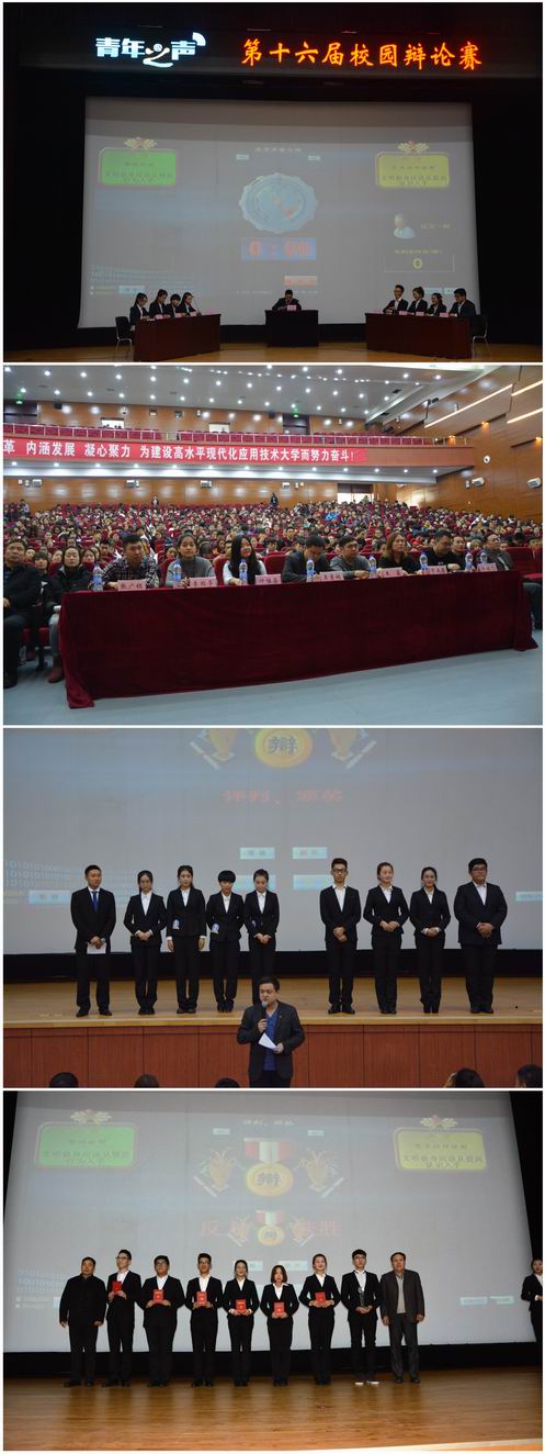 本次决赛,管理学部和艺术设计学部就“文明修身应该先从规范行为入手还是提高认识入手”展开精彩辩论,最终艺术设计学部以绝对的优势夺得冠军,管理学部获得亚军;食品学部、人文学部获得季军。艺术设计学部崔鹏、管理学部吴新获得“最佳辩手”称号;计算机学部付晓宇、食品学部刘璐、建工学部周辰宣、机电学部武超群、经贸学部李莹莹、人文学部王晓雪、外国语学部柴书珩获得“优秀辩手”称号。