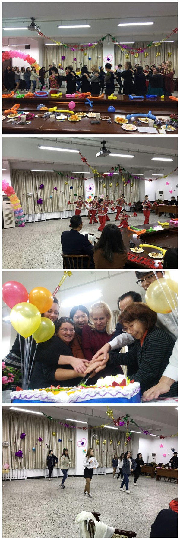 11月21日晚,我院国际合作交流办公室在主楼320举行了中外师生联欢会。当晚活动室装点明亮温馨,进场音乐优美欢快,屏幕循环播放到场嘉宾在校精彩图片,大家纷纷在签到处签名留念,整个活动现场充满喜庆快乐祥和的气氛!