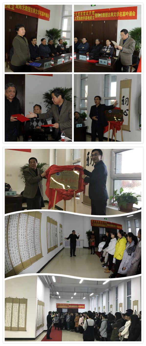 12月6日下午,人文社会科学学部实践教学基地揭牌仪式暨陈光教授“走进经典、以文化人”经典诵读大会在我校图书馆101室举行,李世泽、陈光、胡万义、吴国安等学院领导出席,图书馆、人文学部、学务处、团委等部门负责同志,以及人文学部、图书馆部分师生参加了活动。蔡柏岩副院长为图书馆和人文学部共建的实践教学基地揭牌。