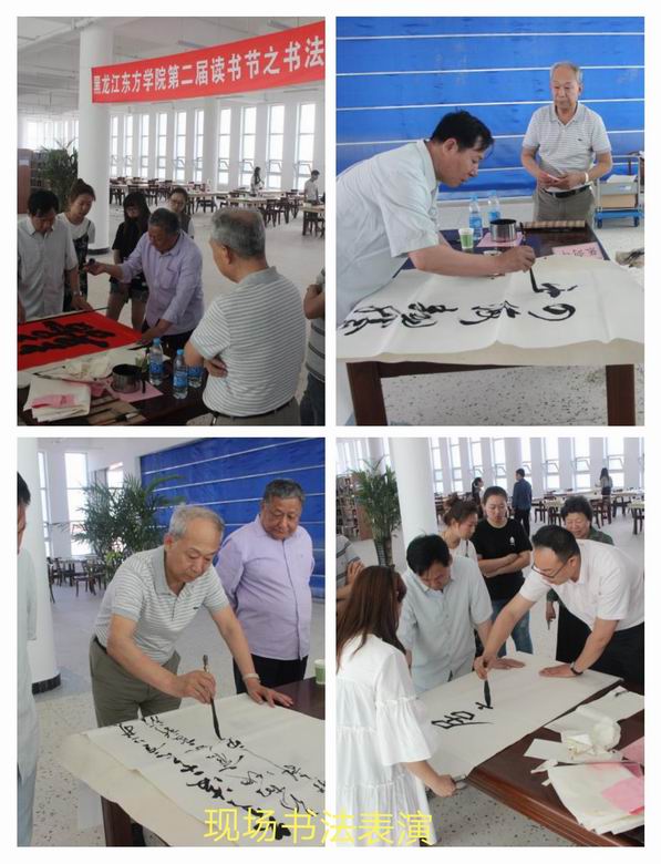 比赛结束,陈光副院长,吴国安总会计师,曲依民教授,学院办公室主任助理万淳等进行了现场书法表演,与参赛者相互切磋交流。