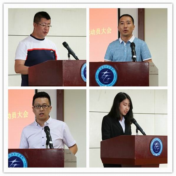 团委书记肖立东代表教务处、学务处、团委、思政部对2018年暑期社会实践活动做了具体部署和安排,思政教研部教师李键针对社会实践提出了课程要求,学生李哲作了代表发言,相关职能部处领导向暑期社会实践小分队代表进行了授旗。