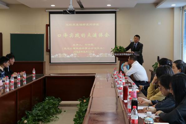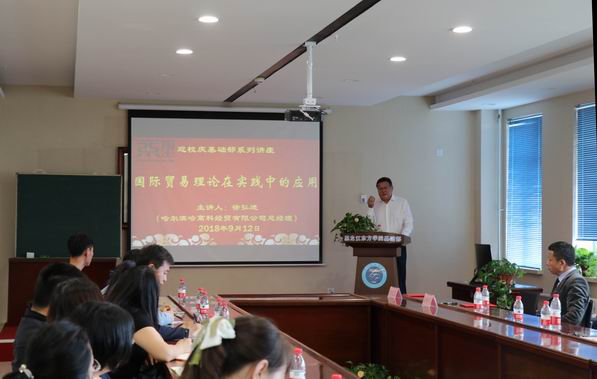 为迎接我院建校25周年,2018年9月12日下午,基础教研部特邀请黑龙江省政府外事办公室处长刘怀臣,哈尔滨哈高科经贸有限公司总经理徐弘进在主楼A917会议室进行学术讲座。学院科研处处长马凤鸣、人事处处长邹俊中、教务处副处长李明明、基础教研部全体教师和学生代表参加了本次活动。
