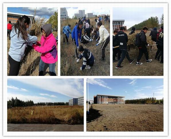 由于场地面积大,杂草分布较广,给这次清草劳动带来了一定的困难。李世泽副院长带领学务处、总务处和各学部深入现场,召开工作会议,要求各学部积极动员、精心准备、有序组织。在劳动中广大师生发扬不怕脏、不怕苦、不怕累的劳动精神,用一双双勤劳的手为校园的绿化献出一份力量。约14000平方米的劳动区域在老师和同学们的共同努力下,通过三天的辛勤劳动,杂草、杂物等全部被清除,校园环境得到了极大改善。