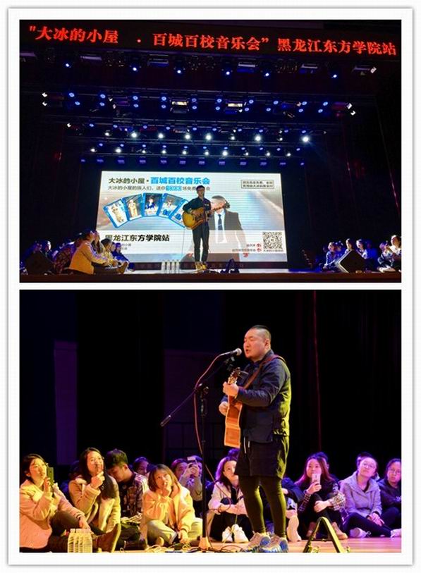 10月19日17:30,养正讲堂星光点点、乐声环绕,“大冰的小屋﹒百城百校音乐会”公益演出在我院举行,大冰书里的主人公王继阳、谣牙子等人纷纷从书中走出来,分享大冰书里书外和民谣背后的故事,带领在场近千名慕名而来的读者、观众走进冰书、民谣的世界。