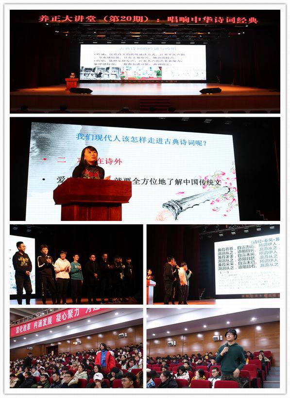 讲座中,刘冬颖教授向大家介绍了中国古代诗词的数量及传承情况,讲解了现代人通过每日一诗、了解中国优秀传统文化、把握古典诗歌音乐与文辞的合二为一的重要特征等三个方面可以更好走近古典诗词,通过对旗亭画壁、长恨歌等故事的讲述,为大家再现了古代诗词吟唱的场景,并教授学生现场学唱《诗经•郑风•子衿》和《诗经•秦风•蒹葭》,与在场师生进行了很好的互动交流。