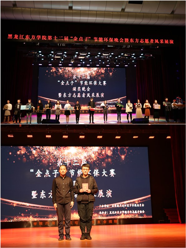 11月30日,在第33个世界志愿者日即将到来之际,由院团委指导、院青年志愿者协会主办的第十二届“金点子”节能环保大赛颁奖晚会暨东方志愿者风采展演在养正讲堂举行,学务处副处长、院团委书记肖立东、院团委副书记张程受邀与我院900余名志愿者一起参加了晚会。