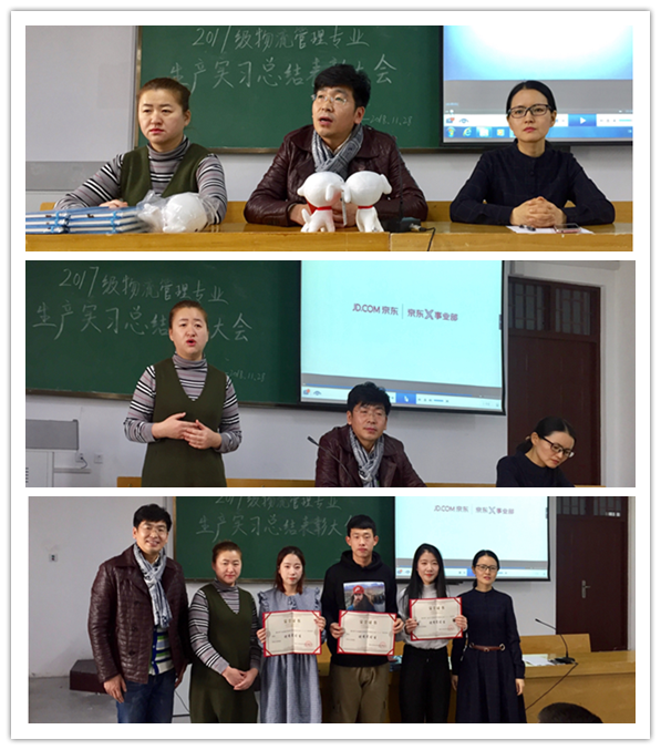 11月28日下午13:00,管理学部物流管理专业举行京东物流(哈尔滨分公司)生产实习总结大会。宋殿龙、任满鹏、刘金燕、姜洋四名2017级物流管理优秀实习生从实习单位和学部领导手中接过了优秀实习证书。