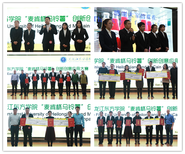 来自9个学部31个专业的304名学生,69个团队,40名指导教师报名参赛,共收到参赛作品58件。经过麦肯食品(哈尔滨)有限公司的严格筛选,最终有12个项目进入决赛。经过产品策划书、现场路演、产品展示,专家提问四个环节的激烈比拼,最终,作品idoI汁获得大赛一等奖(奖金3000元),作品帕薯(Potato with filling)、“薯酪球”获得二等奖(奖金2000元),作品薯白白护手霜、自热式极简土豆泥、缤纷马铃薯世界分别荣获三等奖(奖金1000元)。