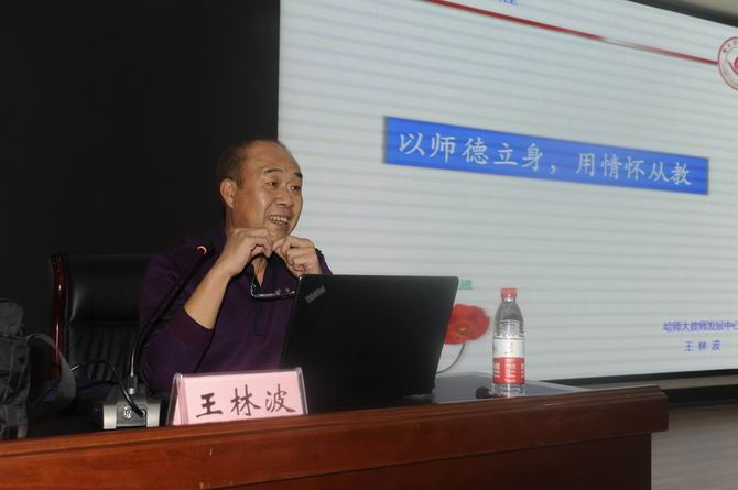 2019年3月13日下午,我院在图书馆报告厅举行师德师风教育主题讲座,哈尔滨师范大学教师发展中心专家组成员王林波教授受邀,以《以师德立身 用情怀从教》为题,为我院教师做了一场生动的讲座。学院党委书记王敏、党委副书记邢德昌、副院长蔡柏岩,人事处、党委宣传部、统战部主要负责同志出席,全院近300名教师与会聆听。