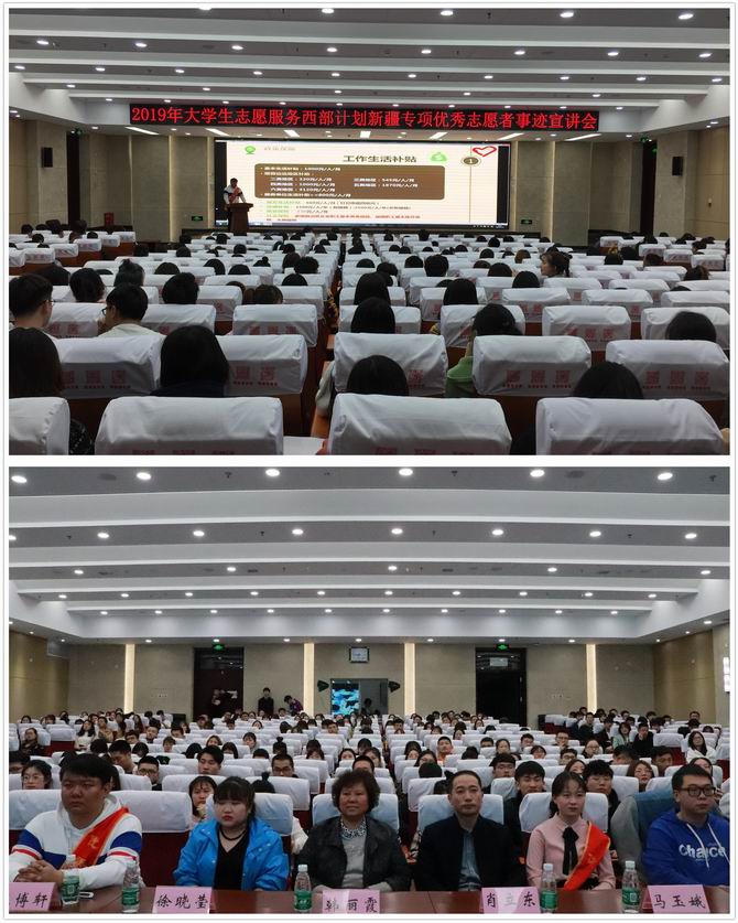 受我院团委(西部计划项目办)邀请,4月14日晚,2019年大学生志愿服务西部计划新疆专项优秀志愿者事迹宣讲团来到我院,为有意参加西部计划的2015级、2016级近300名学生进行典型事迹报告。学院副院长韩丽霞、团委书记肖立东、部分辅导员参加了此次宣讲会,宣讲会由院团委副书记张程主持。