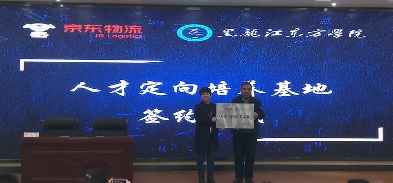 管理学部与京东物流人才定向培养基地签约仪式日前在学院图书馆报告厅举行。未来双方将在课程植入、开展活动、实习、就业等方面开展合作。这也意味着黑龙江东方学院“京东班”正式成立。