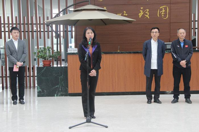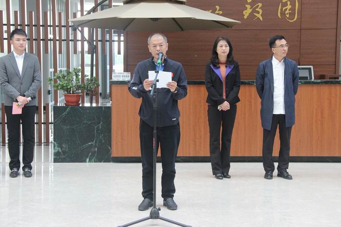 黑龙江省高校图工委常务副秘书长郭建民代表省图工委对少儿阅览区的开放表示祝贺。