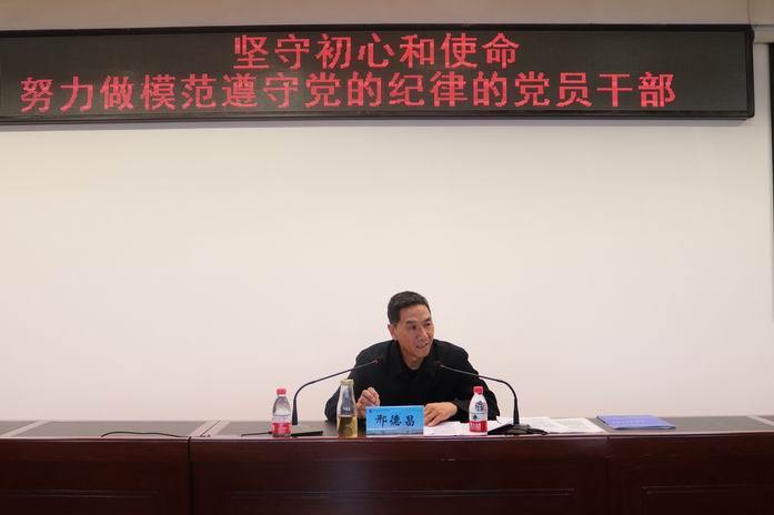 邢德昌以“坚守初心和使命,努力做模范遵守党的纪律的党员干部”为题,紧密联系工作实际,从“为什么要进行党的纪律教育工作”、“把握党的纪律的教育内涵”和“努力做模范遵守党的纪律的党员干部”三个方面,为大家上了一堂生动的党课。