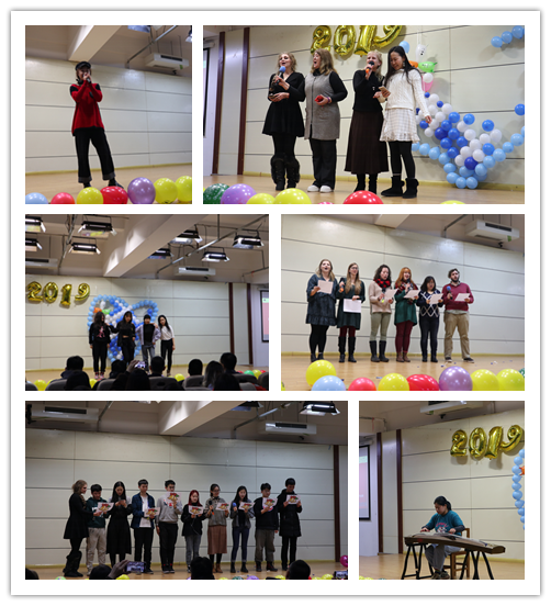 12月12日,教务处、人文学部、外语学部、经济贸易学部的部分师生与全体外籍教师和留学生共同联欢。活动中,学院为优秀外籍教师,学习态度、参加活动积极的外国留学生,以及优秀汉语辅导教师颁奖。