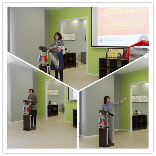 揭牌仪式后召开的国际合作域外育人才培养研讨会上,东北联邦大学代表分别围绕现代俄语科学语体研究、对外俄语教学中跨文化交际问题、对外俄语教学理论与实践研究三个主题作了报告。