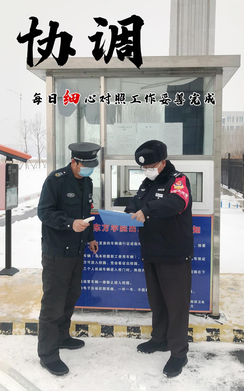 有一群这样的东方人,平常日子里,他们默默无闻,但是他们的工作却维持着学院发展的日常。这个不平凡的寒假里,同样也是他们,为将病毒阻隔在东方校园之外,面对危险,有过惶恐,却没有退缩,坚守岗位,履行职责。每一天,都能看到他们执着的身影,坚守在各自平凡而伟大的岗位上。他们,为东方筑起了抗击疫情第一道“安全防线”。