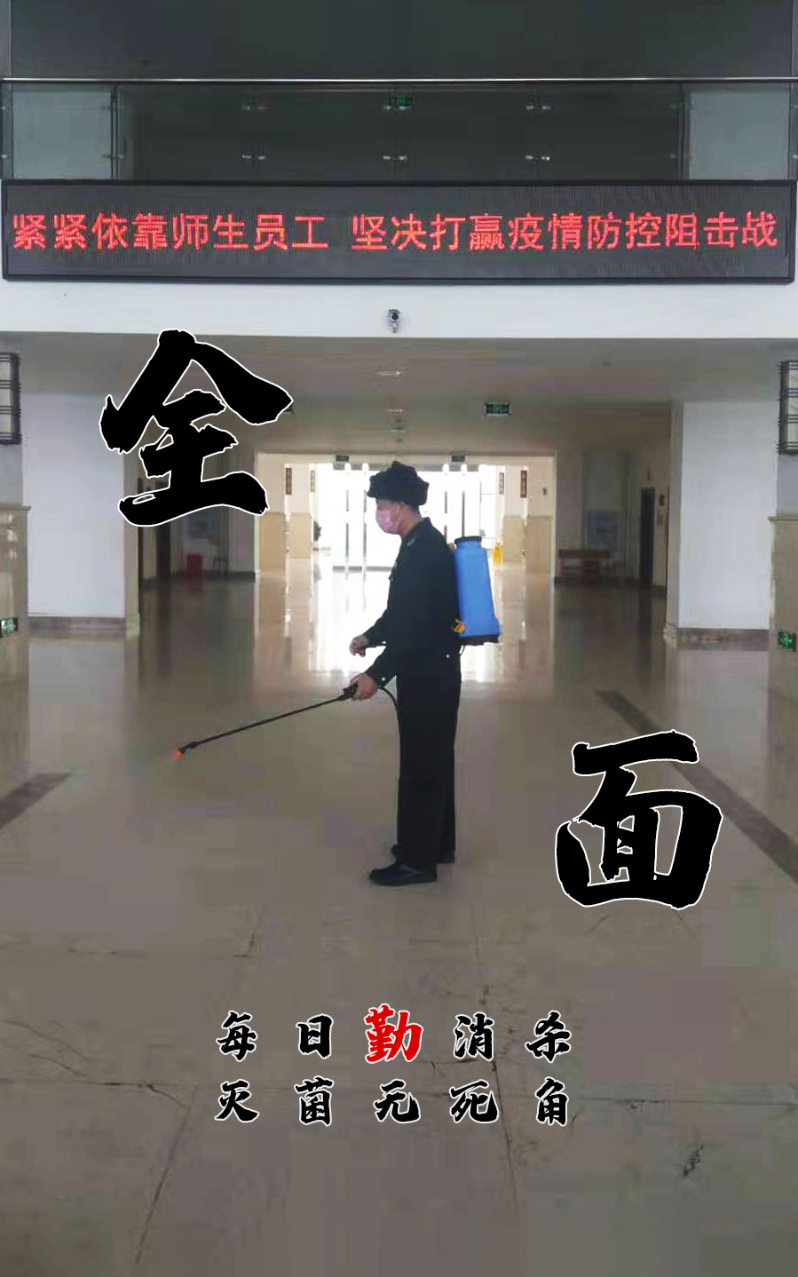 他们背着几十斤的消毒液,走遍东方校园的每一个角落,让这份守护不留一处死角……
