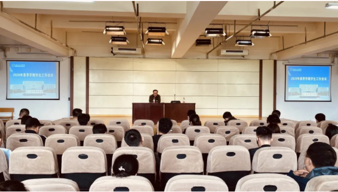 5 月 14 日,我院在学生活动中心 308 报告厅召开 2020 年春季学期学生工作会议。学务处、团委、公寓管理中心全体人员,各学部学生工作副主任及全体辅导员参加会议。