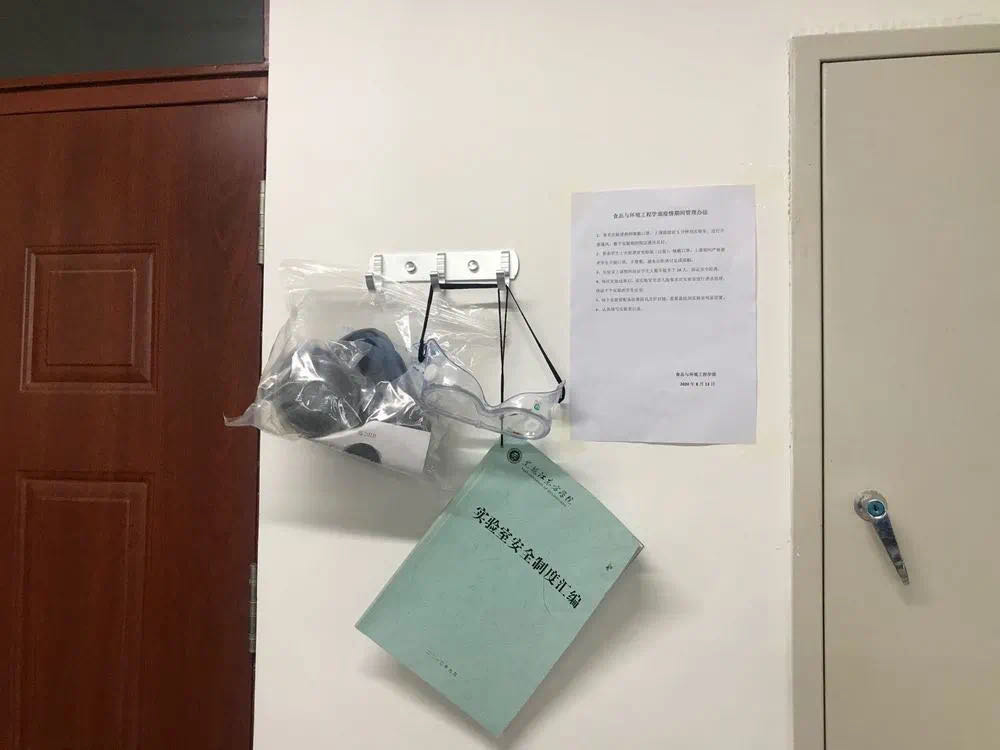 为了应对疫情影响,食品学部特别修订了《教室实验室管理办法》,对实验课程的小组讨论环节做了修订,对实验室做了疫情防控标准化建设,并在实验室准备了护目镜、防毒面具等设施,以应对各种突发状况。