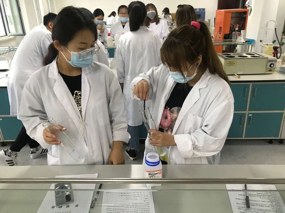 称量、消解、蒸馏、吸收、滴定,再到最后计算奶粉中蛋白质的含量……实验的每个环节同学们都认真仔细地完成。