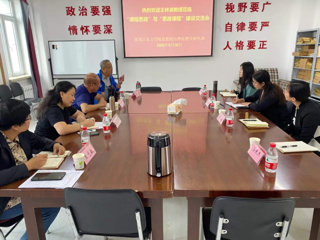 王林波指出,要围绕特色培育加强思政课建设。一要有课程特色,既要传授知识,又要传递思想,突出价值引领;二要有地域特色,把龙江地域特色融入在课堂教学之中,做到理论联系实际;三要有本校特色,结合黑龙江东方学院的办学定位,立足应用型人才培养,培养大国工匠精神;四要有本人特色,充分发挥教师的个人魅力和长处进行教学,形成独特的教学风格,增强教学感染力。
