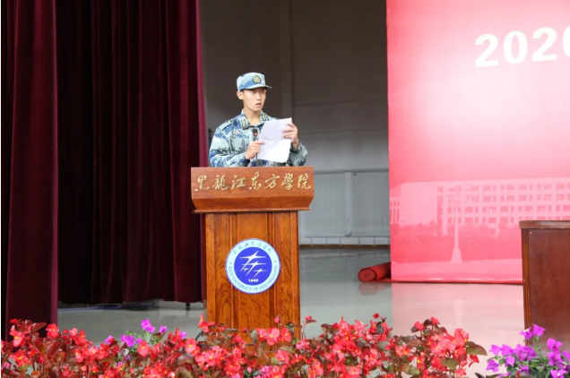 学生代表顾嘉铭期待自己能够以昂扬的斗志和饱满的热情投入到军训活动中,上好大学的第一课,使自己成为一名合格的大学生。