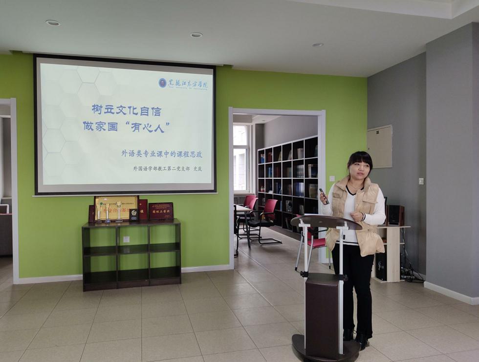 为实现课程思政作为促进党务与业务有机结合的重要载体,推动“双带头人”教师党支部书记在本支部带头作用,做课程思政的“示范者”,10月14日下午外国语学部教工第二党支部书记史岚为外国语学部专任教师讲授了一堂生动、实用的课程思政“示范课”。