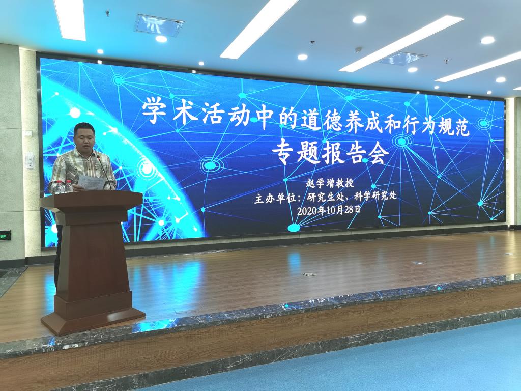 报告会上,赵学增对学术道德与科技伦理、学术道德养成、学术行为规范等三个方面进行了深度讲解与分析。在对学术规范研究背景及内容的讲解中,贯穿案例对学术道德、学术失范、学术不端和学术腐败的现象加以论述。