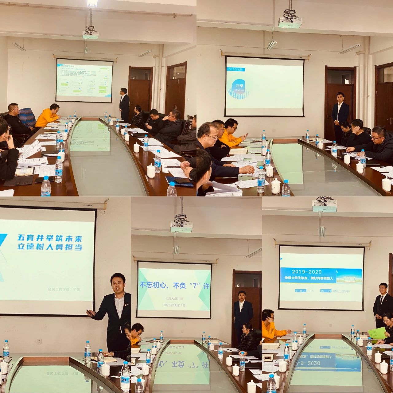 评选会上,2020年度优秀辅导员候选人按抽签顺序依次进行述职和答辩,围绕2019-2020学年度个人的工作思路、开展研究、育人实效、经验总结等方面,以PPT的形式对所带班级的日常管理、学生党团组织建设,毕业生考研和就业工作中的特色活动等内容向现场评委进行了全面深入的汇报和展示。