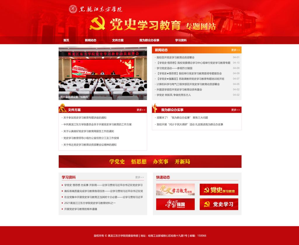 4月12日,黑龙江东方学院党史学习教育专题网站(http://www.dfxy.net/dsxx/)正式上线,为广大师生党员开辟学党史、悟思想、办实事、开新局的新窗口。