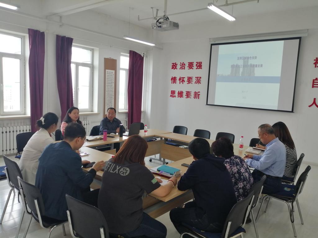 讲座中,刘小宁围绕黑龙江省的地缘与区域特色、黑龙江省对国家的历史和现实贡献以及在经济发展中面临的问题及其成因、如何推进黑龙江省经济高质量发展等方面,同与会教师共同交流如何通过了解我省经济和社会发展形势,推进龙江“四大精神”和“五色教育”融入高校思想政治教育。