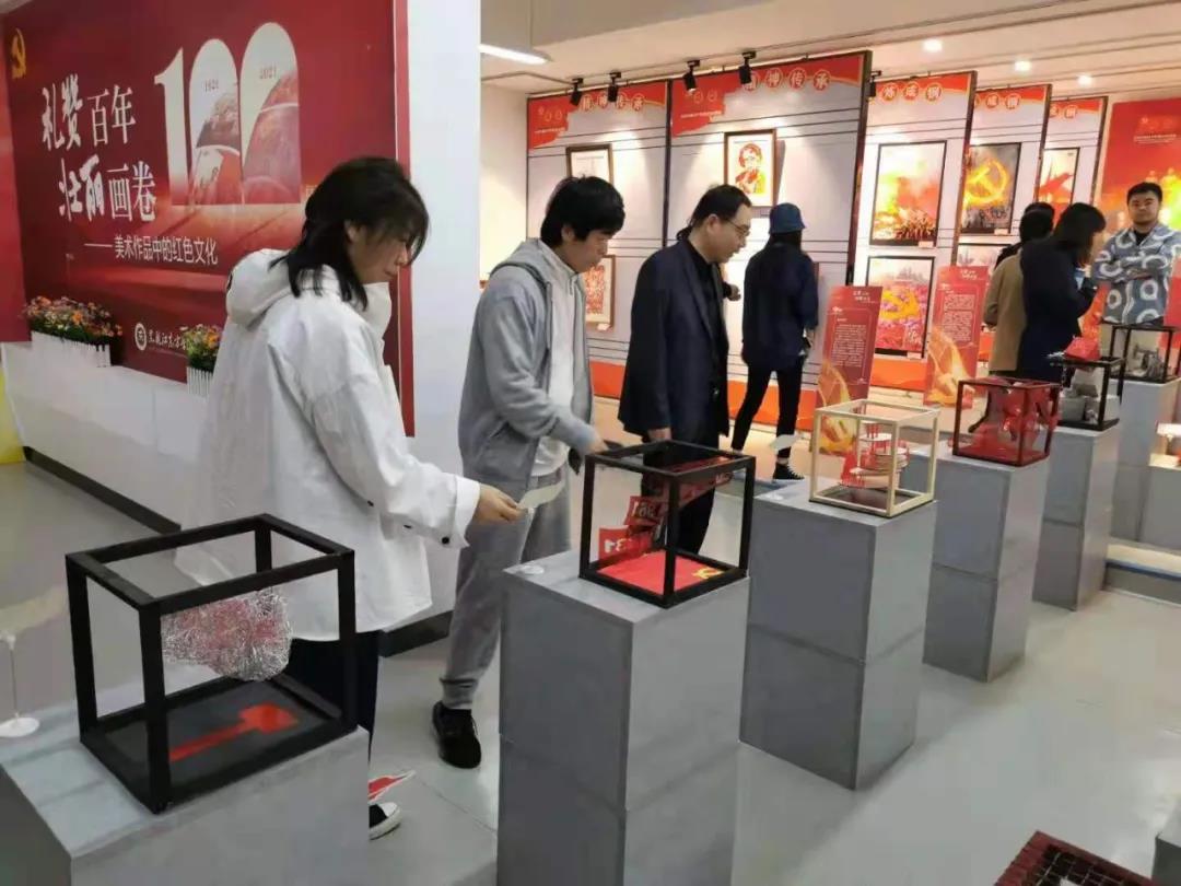 我校艺术设计学部充分运用学科优势,强化发挥美育作用,把党史学习教育和美育教育、文艺创作、课程思政紧密结合起来,以建党百年为主题,绘制海报300余张;围绕龙江“四大精神”、百年党史故事等主题,完成剪纸、陶艺、漆画等党史主题作品20余幅。结合党的发展历史阶段,以时间为线,完成了“百字系列”PS课程海报作品:“百转千回”“百战百胜”“百尺竿头”“百炼成钢”……概括了百年峥嵘岁月中党在各个历史阶段的发展历程;“红心向党”系列作品,则提取党在各个时间节点具有代表性的历史元素,对党的发展历史作了精彩的艺术呈现;将红色历史与设计基础课程结合,让学生从党史学习中提取元素进行艺术表现,最终完成“红色基因”系列综合构成作品,用党创立百年来的丰功伟绩和英雄人物事迹激励师生奋力前行。