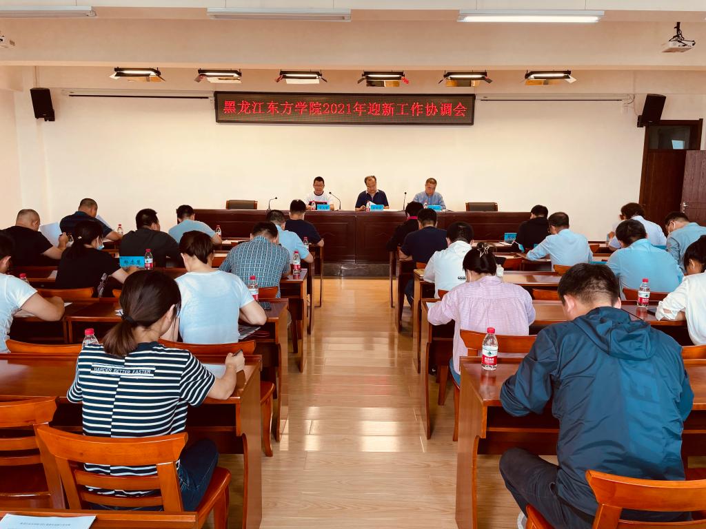 会上,招生就业工作处处长陈树一对学校2021年招生情况进行了通报。学生处处长高文举解读了《黑龙江东方学院2021年迎新工作方案》,对新生入校流程、时间节点、报到程序、职责分工进行了详细说明。