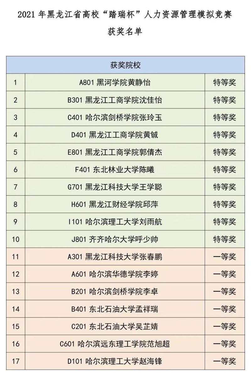 10月23日,由黑龙江省教育厅高等教育处支持,黑龙江省普通高等学校创新创业教育指导委员会主办,齐齐哈尔大学承办,上海踏瑞计算机软件有限公司技术支持的2021年黑龙江省高校“踏瑞杯”人力资源管理模拟竞赛圆满落幕。全省共有30所本科院校,80支队伍、300余名师生参与比赛。我校建筑工程学院指导教师辛笛、宋祺带领的周灵杰队获得本次大赛一等奖,建筑工程学院指导教师王达、宋祺带领的刘佳欢队以及招生就业工作处指导教师王妍、孙韬带领的杨志龙队获得二等奖。