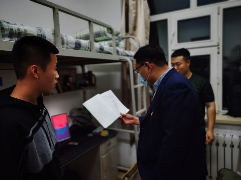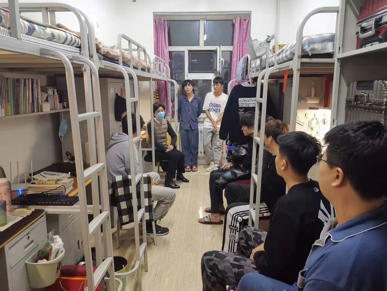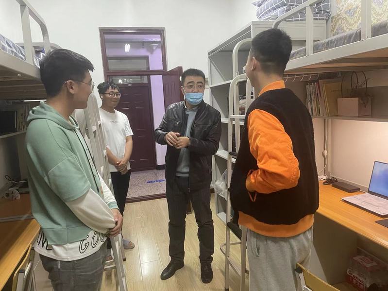 11月5日晚8时,在信息工程学院院长惠丽的带领下,王成全、田崇瑞、王涛等班子成员准时出现在了各自包保寝室的公寓门前。这是学院班子成员包保全体在校学生的第六天,也是他们第五次全员夜间走访寝室。