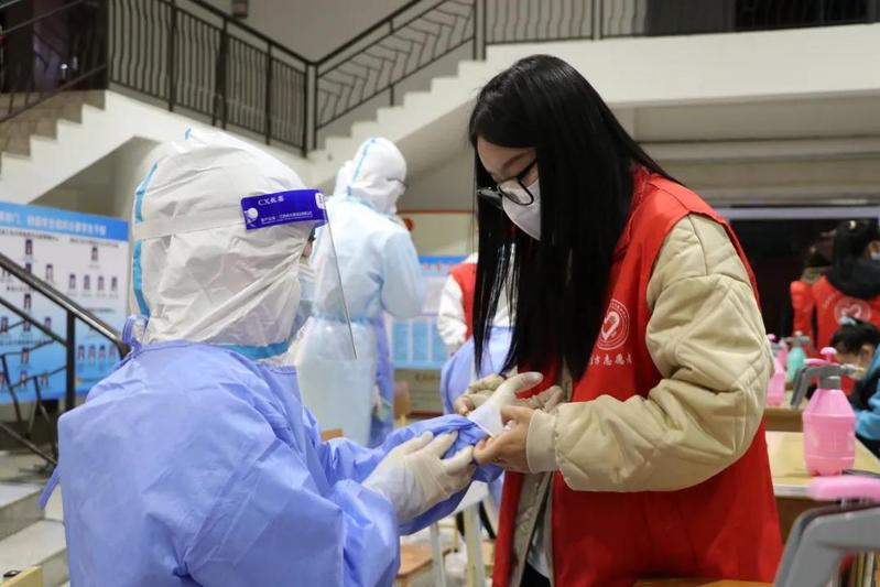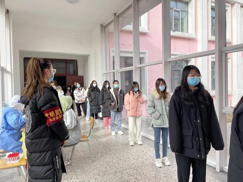 校园随处可见志愿者的身影,有序指挥同学做核酸的是他们,协助医务工作者的是他们,不惧寒风坚守岗位的也是他们。