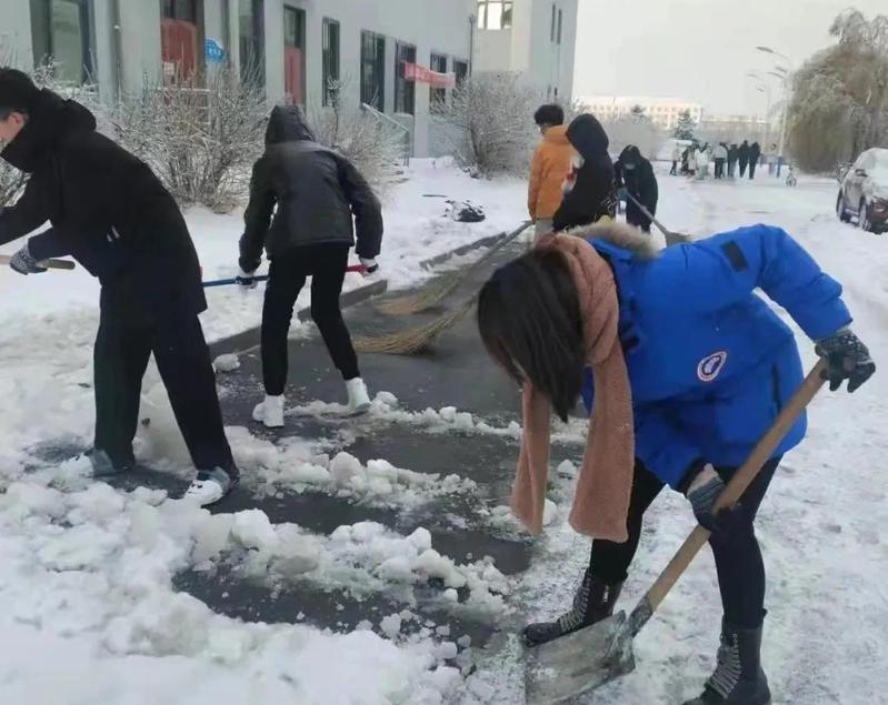 他们以雪为令、不畏严寒、齐心协力开展清雪工作,确保师生校内出行安全!