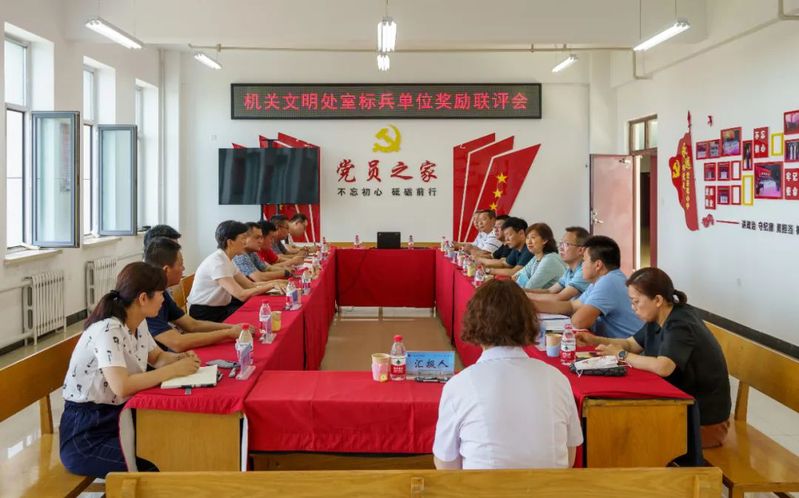 为强化机关职能部门优质服务,树立机关职能部门良好形象,打造优秀队伍,2021年4月28日,机关党总支和人事处联合发起并推动机关文明处室创建。今年6月27日,机关文明处室标兵单位奖励联评会在主楼827召开,联评会由8位来自二级学院的院长、党总支书记和副书记以及8位机关党总支代表组成,联评会由机关党总支书记张丽华主持。