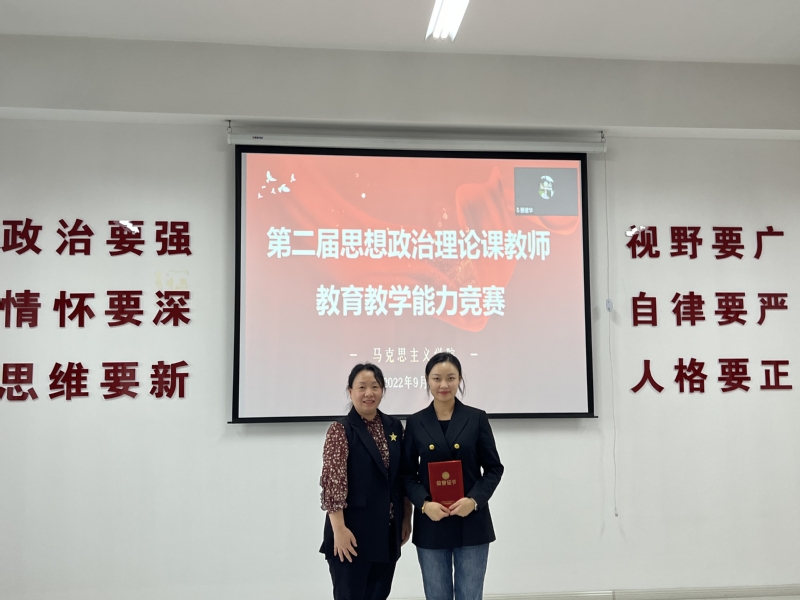 李军卫为在第六届黑龙江省高校青年教师教学竞赛中荣获思政组三等奖的邢瑜辉老师颁奖